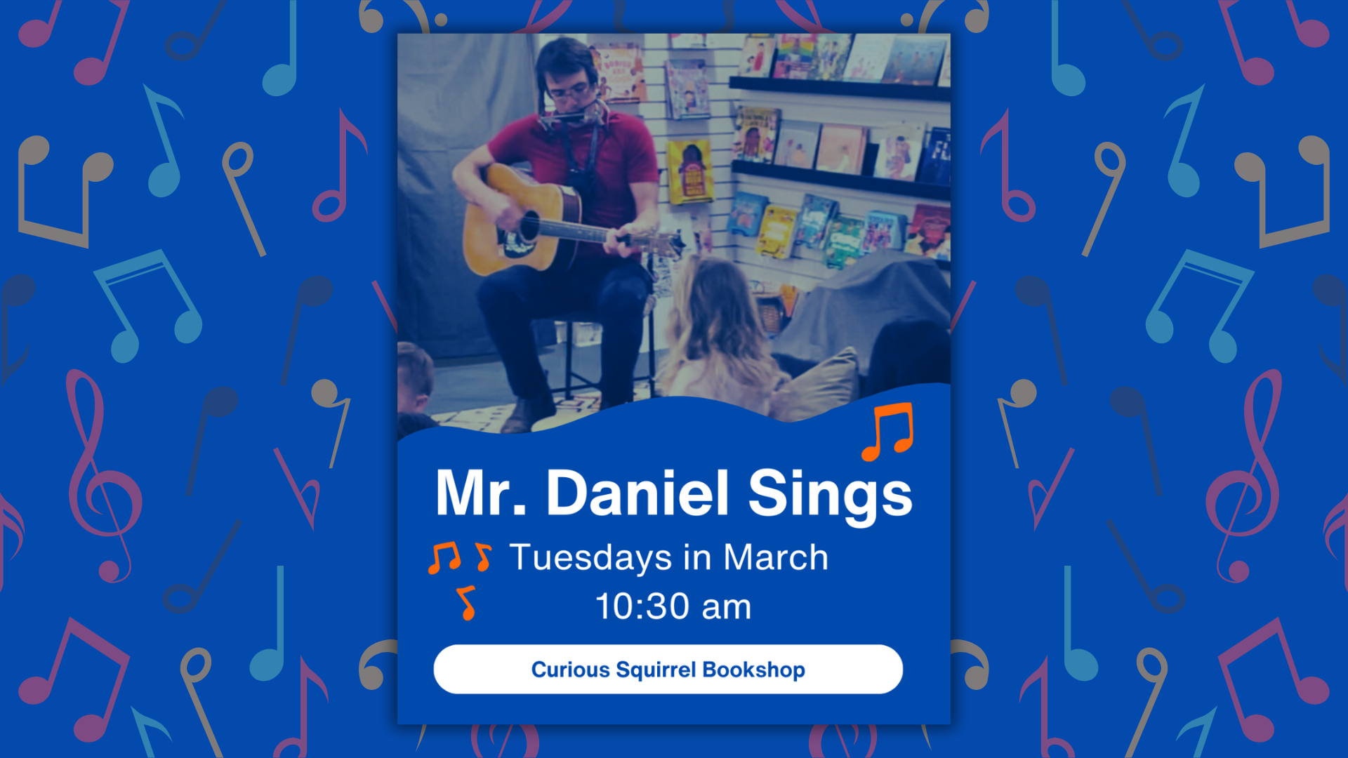 Mr. Daniel Sings will be bringing the magic of music to the Curious Squirrel! Join us for a fun-filled morning of singing, dancing, and rocking out to catchy tunes!